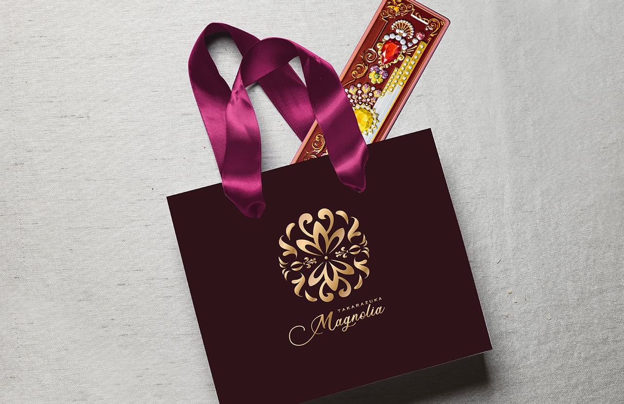 エレガントに宝石をあしらったギフトバッグ。