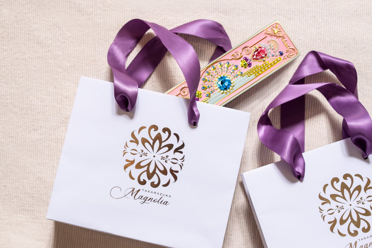 エレガントに宝石をあしらったギフトバッグ。