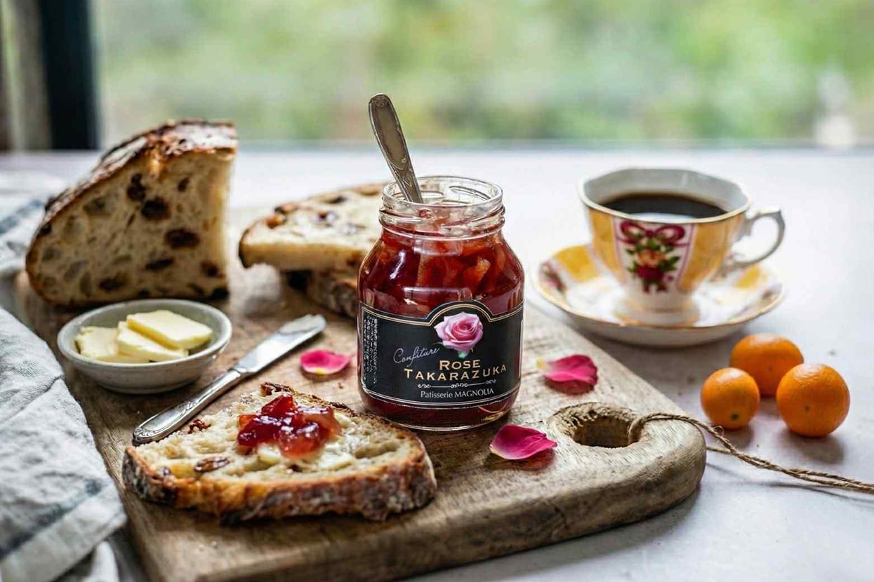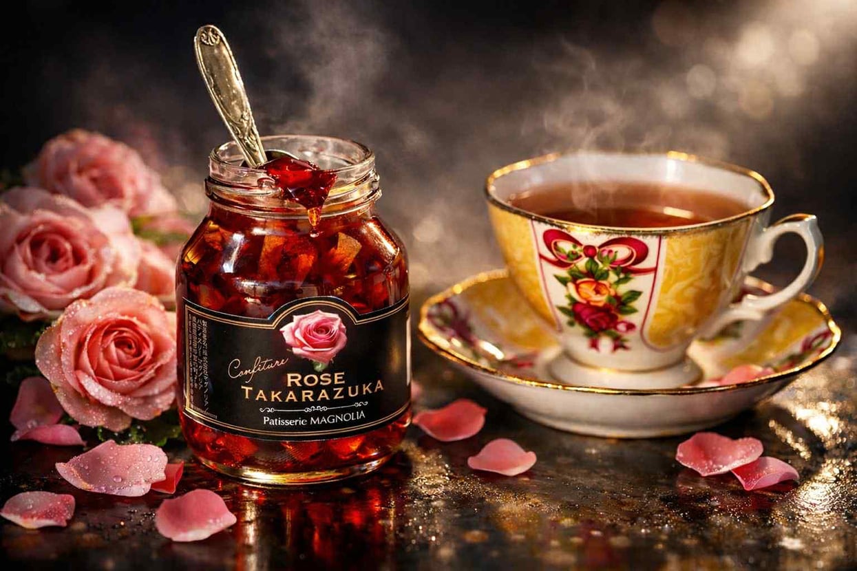 宝塚らしい華やかさを意識したバラのコンフィチュール。